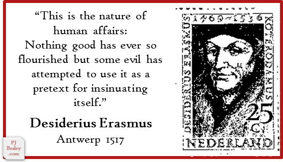 The Erasmus Pages will become such a collection. Not of pithy phrases and well-worn expressions that have been the source of a dozen different memes over last several years, but contemporary words that surprise the mind with their freshness or those written half a millennia ago that resound with new clarity. I do not seek enlightenment here. No nirvana waits at the end of the perfectly structured sentence; but the possibility of drowning, delightfully and without reservation, in an endless ocean of words carefully chosen, beautifully written…that, yes that paradise, exists.