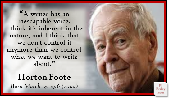 Albert Horton Foote, Jr., American playwright and screenwriter. Academy award screenplay recipient for To Kill a Mockingbird (1962) and Tender Mercies (1983); Pulitzer Prize for Drama (1995); and, an Emmy (1997).