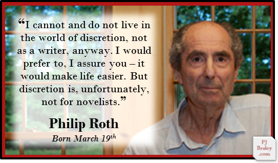Philip Milton Roth, award-winning American novelist, including the Pulitzer Prize for fiction (1997); two U.S. National Book Award for Fiction 1960 and 1995; and the National Humanities Medal (2010).
