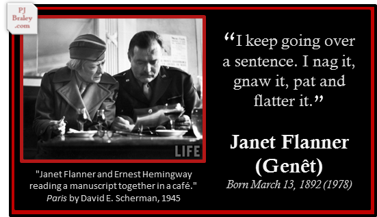 Janet Flanner (aka “Genêt “), award-winning American writer and Paris correspondent of The New Yorker during WWII.